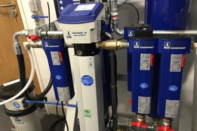 Après une étude de l’installation existante, BEKO TECHNOLOGIES a préconisé un système de traitement d’air comprimé permettant d’une part d’abaisser le PRSP, et d’autre part d’éliminer l’huile résiduelle contenu dans l’air comprimé de manière plus efficace, car le site entier n’avait pas besoin d’une teneur en huile résiduelle de classe 2. Puisque l’air comprimé est utilisé en majorité pour alimenter les lignes d’emballage non utilisées en permanence, le choix s’est porté sur le sécheur à membrane à régulation électronique DRYPOINT M Eco control. Il diminue l’air purgé durant des demandes faibles et atteint un PRSP de -20°C de manière constante tout en opérant en mode continu. Ce sécheur est combiné à un ensemble de filtration comportant un filtre standard avec flotteur CLEARPOINT, un filtre à charbon actif avec cartouche CLEARPOINT V ainsi qu’un filtre à antipoussière oil free CLEARPOINT pour obtenir un air comprimé de classe de qualité [1.3.1] selon la norme ISO 8573-1.