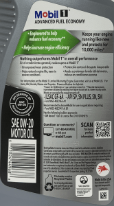 Produit : Mobil 1 Advanced Fuel Economy Advanced Full Synthetic Motor Oil