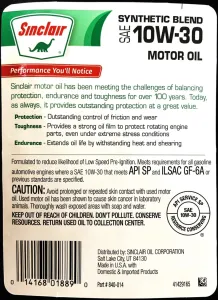 Les résultats des tests effectués sur cet échantillon sont conformes aux spécifications SAE J300 pour le grade de viscosité SAE indiqué sur l’étiquette du produit et sont conformes aux catégories de service API répertoriées.
