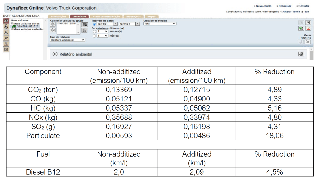 Les résultats obtenus avec le système Dynafleet® de VOLVO démontrent une réelle économie de carburant ayant un impact direct sur la réduction des émissions. Le diesel additisé a permis une économie de carburant de 4,5 % et une réduction des émissions de particules de l’ordre de 18 %, ce qui démontre clairement que l’améliorant de combustion favorise la réaction chimique (1).