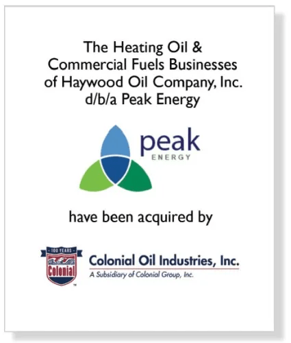 Matrix Capital Markets Group, Inc. (« Matrix »), une banque d’investissement indépendante de premier plan, annonce qu’elle a conseillé Haywood Oil Company, Inc. d/b/a Peak Energy (« Peak » ou la « Société ») sur la vente de ses activités de mazout et de carburants commerciaux à Colonial Oil Industries, Inc. La société a son siège social à Waynesville, en Caroline du Nord, et distribue du mazout et des carburants commerciaux dans l’ouest de la Caroline du Nord.