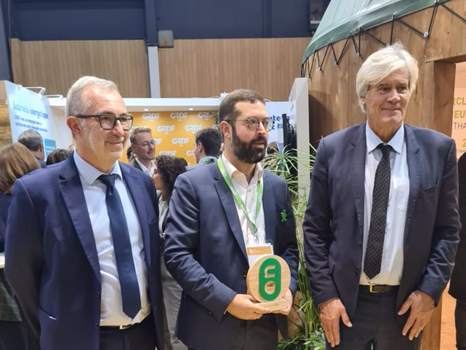 A l’occasion du Salon des Maires et des Collectivités Locales qui se tient actuellement à Paris, Stéphane LE FOLL (Maire du Mans et Président du Pôle métropolitain Le Mans-Sarthe, ancien Ministre), Emmanuel POHYER (Directeur Commercial Major Project Schneider Electric) et Frédéric MARTIN (Directeur General Adjoint de GRDF) ont remis à Jean FOYER, PDG de la start-up sarthoise Qairos Energies, le prix « Coup de cœur du jury production EnR pour la décarbonation », décerné le 10 octobre 2022 à Paris, par le Comité Stratégique de Filière Nouveaux Systèmes Energétiques pour sa proposition vertueuse de développer des écosystèmes énergétiques et industriels basés sur une technologie innovante de gazéification de biomasse afin de produire des gaz renouvelables hydrogène et méthane.