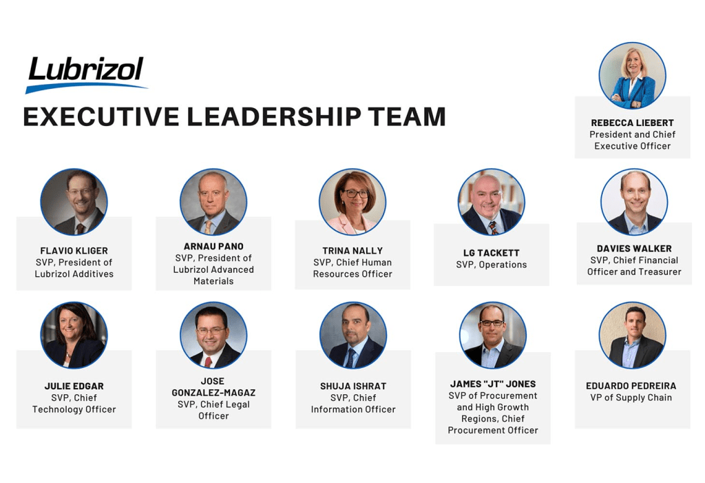 En plus de ces deux nominations, la nouvelle Executive Leadership Team de Lubrizol sera composée de :