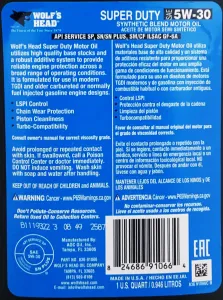 Produit : Wolf’s Head Super-Duty Semi-Synthetic Motor Oil
