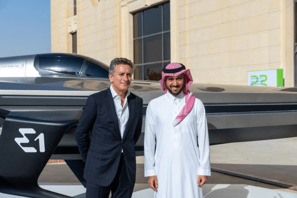 Le fondateur de l’E1, Alejandro Agag, avec le ministre saoudien des Sports, le prince Abdulaziz bin Turki Al-Faisal