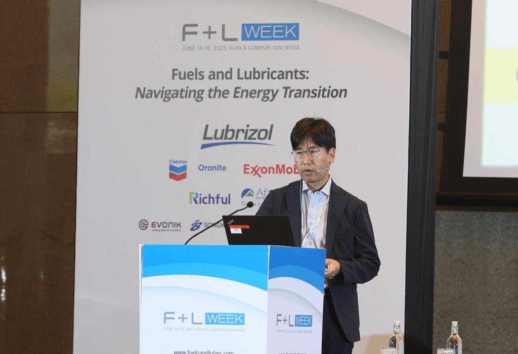 Takatoshi Shinyoshi, chef de groupe de la Division de l’ingénierie des matériaux d’électrification et de l’environnement chez Toyota Motor Corporation au Japon, a annoncé le développement d’un nouveau fluide de boîte-pont à très faible viscosité pour les véhicules électriques lors de la F+L Week 2023 à Kuala Lumpur, en Malaisie.