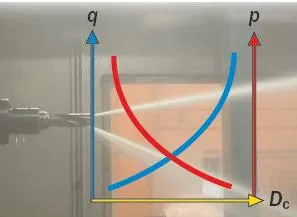 Volume d’adduction interne de liquide de coupe (en bleu) en fonction de la pression (en rouge) et du diamètre (en jaune).Volume d’adduction interne de liquide de coupe (en bleu) en fonction de la pression (en rouge) et du diamètre (en jaune).