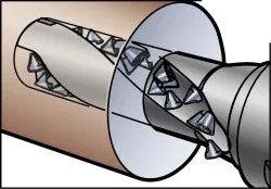 L’arrosage par l’intérieur est à privilégier pour éviter les bourrages de copeaux, surtout dans les matières à copeaux longs et les trous profonds (4-5 x DC). Oblibatoire pour les trous supérieurs à 3 x DC.