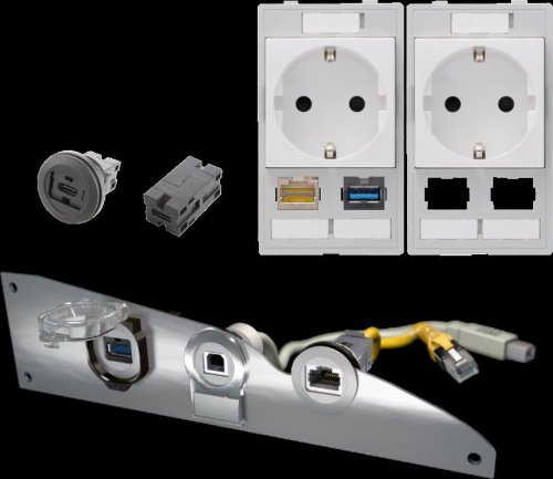 Bénéficiant d’un design épuré avec 4 finitions (noir, argent, blanc ou Inox) et proposés dans les versions USB, RJ45 ou HDMI, ces interfaces utilisateur sont des traversées de cloison dédiées aux réseaux de données.