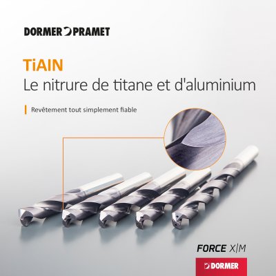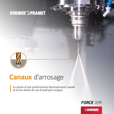 « Les séries Force X et Force M, quant à elles, sont des forets en carbure monobloc revêtus de haute performance, avec ou sans arrosage interne, et offrant des temps de cycle très courts. Ils constituent le choix idéal pour la production de grandes séries et de volumes importants dans les applications CNC, et sont principalement utilisés dans les secteurs de l’ingénierie générale, de l’assemblage de cellules d’avion et des moules et matrices. »