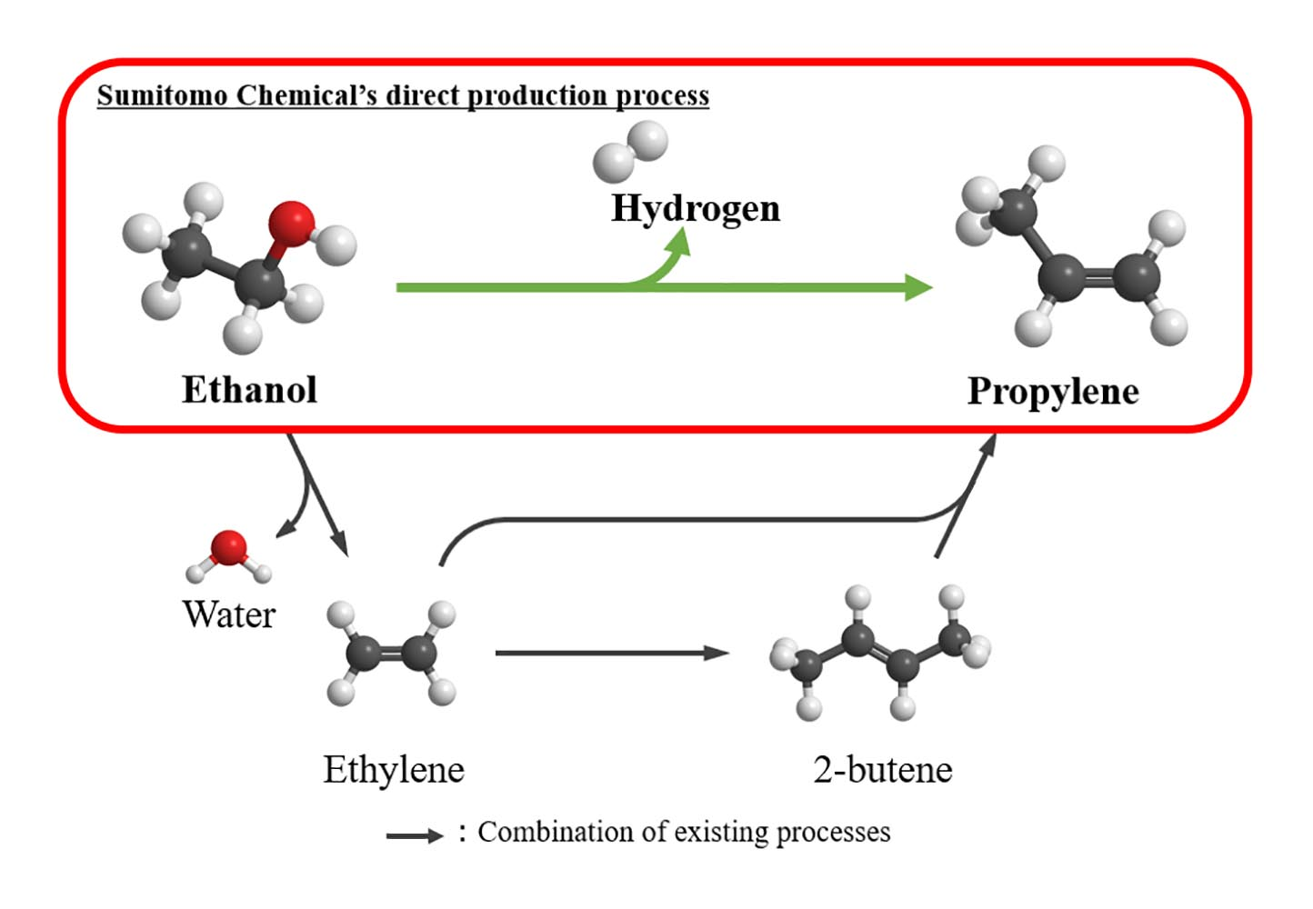 Une importante entreprise chimique japonaise, Sumitomo Chemical, dont le siège est à Tokyo, a lancé la construction d’une usine pilote conçue pour mettre au point une méthode de conversion directe de l’éthanol en propylène. En effet, reconnue pour son potentiel en tant que matière première chimique verte, cette entreprise technologique est financée par le Fonds d’innovation verte (GI) de l’Organisation japonaise de développement des nouvelles énergies et des technologies industrielles (NEDO).