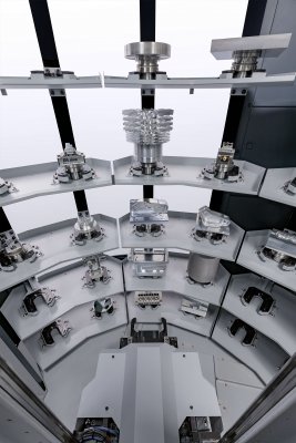 • Automatisation : l’un des marchés cibles étant celui des environnements de production moyennement mixtes, ce package d’automatisation est livré avec un magasin à double anneau qui minimise le temps de préparation des outils et peut contenir jusqu’à 118 outils. Pour les scénarios de production à forte mixité, un magasin externe en option pouvant contenir jusqu’à 254 outils maximise le nombre de types d’outils disponibles. Malgré un encombrement de seulement 6 x 3,75 mètres, cet ensemble d’automatisation peut accueillir jusqu’à 40 palettes porte-pièces. Et lors du chargement des palettes dans la machine, deux postes d’attente permettent de minimiser les temps de changement de palette et les temps de nettoyage en attendant.
