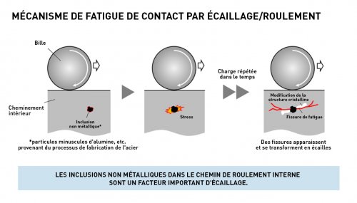 Photos de presse1) Les inclusions non métalliques dans les chemins de roulement internes constituent un facteur important d’écaillage.