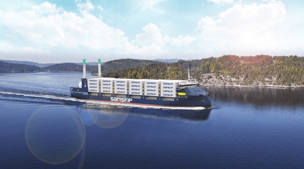 Premier des deux navires sous contrat, le navire sera également le premier porte-conteneurs maritime à courte distance zéro émission au monde à utiliser de l’hydrogène vert comme carburant. Le Samskip SeaShuttle, alimenté à l’hydrogène, est destiné à créer des corridors verts entre le continent européen et la région scandinave. En mode zéro émission, deux navettes maritimes devraient permettre de réduire d’environ 25 000 tonnes de CO2 par an. Ils réaliseront également des opérations à zéro émission dans les ports en utilisant l’énergie verte à quai au port d’escale.