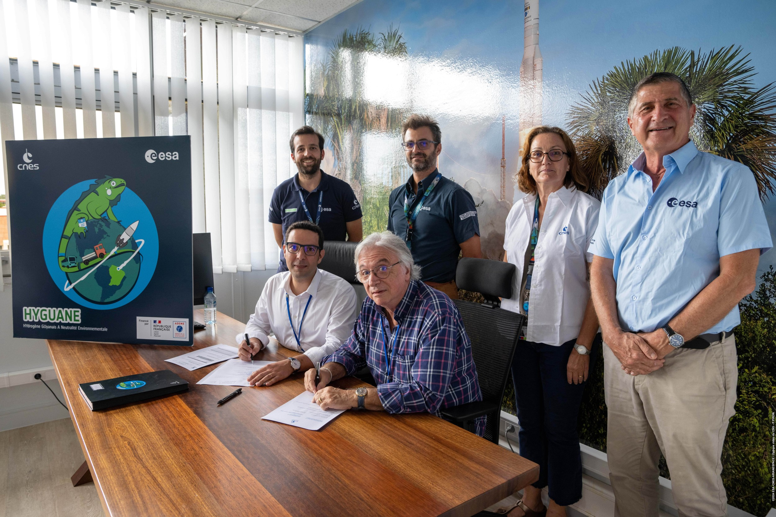 Le Centre Spatial Guyanais représente 15% de la consommation d’électricité de la région. Afin de diminuer son impact environnemental, l’Agence Spatiale Européenne (ESA) a initié le projet HYGUANE, un consortium composé d’industriels du secteur de l’énergie (Air Liquide, MT-Aerospace, BEBLUE), de trois universités (l’Université de Guyane, l’Université de Liège, l’Université Libre de Bruxelles) et de deux institutions (ESA et le CNES).