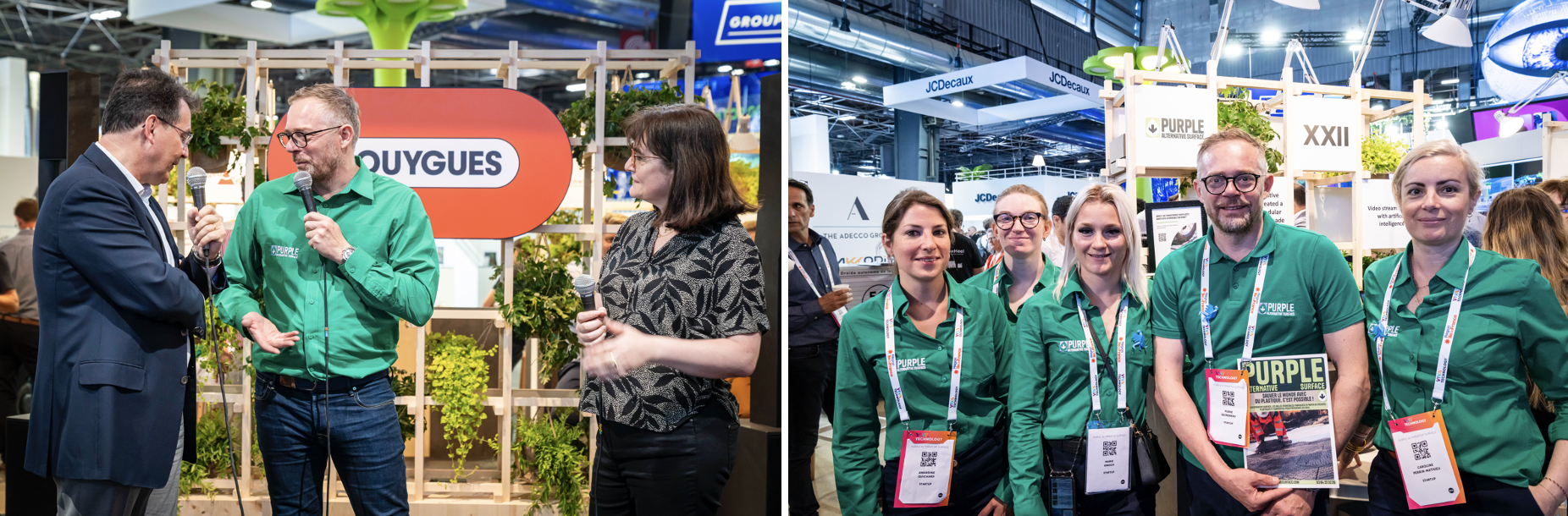 Purple Alternative Surface, installée à Belfort, est une entreprise à mission dans ce domaine révolutionne le secteur du recyclage des plastiques et celui du BTP avec son processus industriel innovant et unique au monde. Cet engagement favorise l’économie circulaire transformant les déchets plastiques non valorisés en revêtements routiers permettant l’infiltration des eaux pluviales.Ces dalles de revêtement Purple Alternative Surface, utilisées dans l’aménagement de parkings et de voies de circulation, offrent une gestion efficace des eaux de pluie, réduisant les risques d’inondations tout en favorisant la recharge des nappes phréatiques.Chaque place de parking réalisée avec ces dalles permet d’économiser une tonne de CO2 et contribue ainsi à la lutte contre le changement climatique.La feuille de route du développement de Purple consiste à développer des mini-usines capables de recycler 1000 tonnes de déchets plastiques par an au plus près des gisements de déchets partout en France et dans le monde renforçant encore plus sa logique d’économie circulaire.Colas (filiale du groupe Bouygues) et Purple sont partenaires innovation depuis 2023 (accord non exclusif) afin de faire progresser le recyclage des déchets plastiques et proposer des solutions vertueuses d’aménagement urbain.David Lerouge, Directeur Innovation chez Colas, ajoute : « Le partenariat avec Purple Alternative Surface s’ inscrit dans notre trajectoire de décarbonation. Il concrétise notre engagement à faire émerger des solutions durables et respectueuses de l’environnement . »À la pointe de l’innovation française et parmi les vitrines de la French Tech industrielle nationale, Purple Alternative Surface sera présente à Vivatech le mercredi 22/05 sur le stand Bouygues qui se retrouve Hall 1 E40.