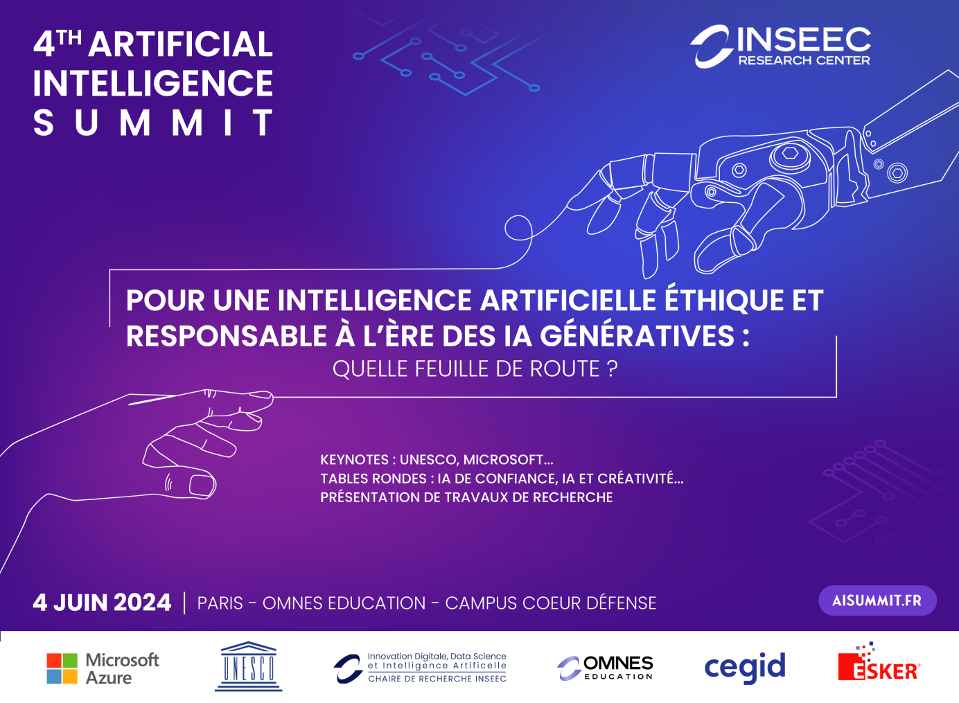 - de 9h à 17h15 : la 4e édition du sommet de l’intelligence artificielle : « IA éthique à l’ère des IA génératives, quelle feuille de route ? » en présence notamment de Gilles Babinet, co-président du Conseil national du numérique, membre du comité IA lancé à l’initiative d’Elisabeth Borne, Dr. Tawfik Jelassi, sous-directeur général pour la communication et l’information de l’UNESCO, Xavier Perret, directeur de l’entité Azure, Microsoft France, Pr. Jean-Gabriel Ganascia, chercheur au LIP6, Sorbonne Université et président du Comité d’éthique du CNRS, et d’autres spécialistes du sujet.