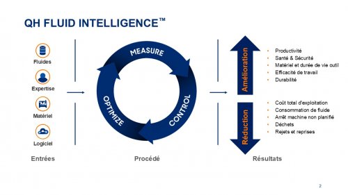 Le résultat final est tangible et prévisible: une productivité améliorée, une durée de vie accrue des équipements et des outils, une efficacité du travail optimisée, une santé et une sécurité améliorées et, dans certains cas, même une durabilité accrue. En fin de compte, les utilisateurs peuvent utiliser les technologies QH FLUID INTELLIGENCE™ pour améliorer davantage leurs coûts totaux (TCO) – un impératif dans l’environnement compétitif et inflationniste actuel.