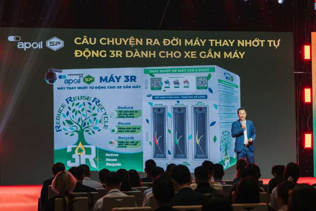 Inspiré par les initiatives de recyclage, le PDG Nguyen Bao Trung a développé la machine 3R pour lutter contre la pollution causée par les déchets de lubrifiants tout en promouvant la sensibilisation au recyclage et à la protection de l’environnement.