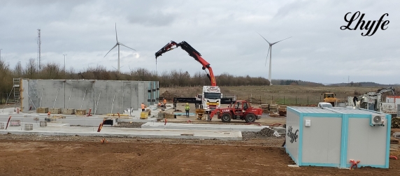 Image: travaux de génie civil en cours, sur le chantier de Lhyfe, à Croixrault (France).