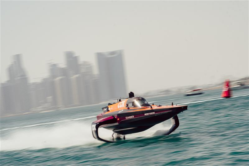 La séance de qualification a marqué la première fois que les RaceBirds, les bateaux de course entièrement électriques du championnat, ont pris leur envol au Qatar alors que l’avenir de la course sur l’eau est arrivé avec style.
