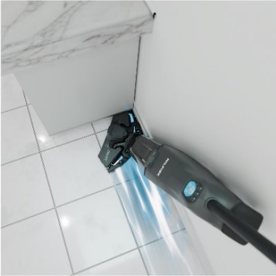 La Nilfisk Dryft lave et sèche en profondeur même dans les coins grâce aux bords biseautés de sa tête de nettoyage.