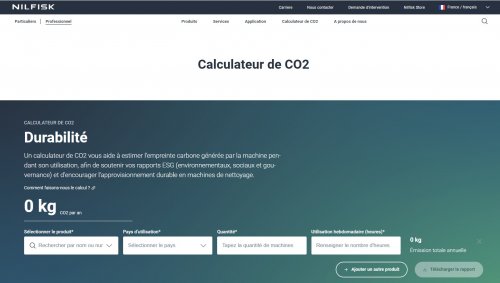 La demande de données en lien avec le développement durable ne cesse de croître, et l’empreinte carbone fait partie des informations les plus demandées par les clients de Nilfisk. A travers ce nouveau calculateur de CO2, Nilfisk leur permet d’accéder aux données d’émission de leur parc de machines existant ou bien de comparer l’empreinte carbone pour de futurs projets d’achats, notamment à travers la comparaison des produits Nilfisk.
