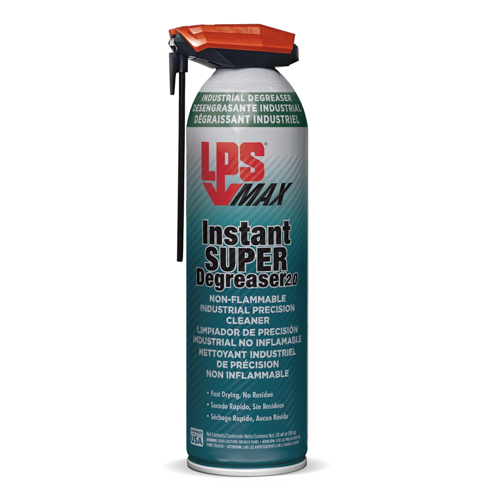 Le Super Dégraissant Instantané LPS MAX® 2.0 a été amélioré pour réduire le potentiel de réchauffement climatique. Ce dégraissant de conçu pour le nettoyage de précision, est formulé pour la sécurité des travailleurs et ne contient ni solvants bromés, ni trichloréthylène, ni perchloréthylène. Évaporation rapide et sans résidus, il ne nécessite ni rinçage ni essuyage pour assurer la continuité des projets.