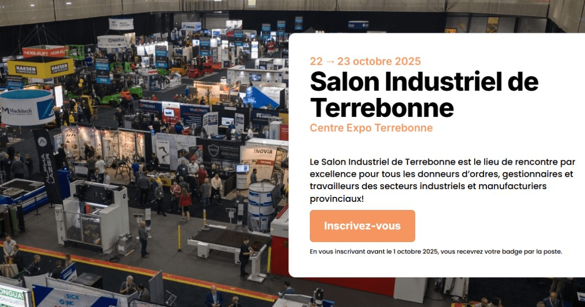 Les 22 et 23 octobre 2025, le Centre Expo Terrebonne accueillera l’innovation industrielle, rassemblant tout ce dont vous, votre entreprise ou vos équipes avez besoin pour continuer de performer.