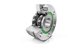 Pour les tables rotatives avec entraînement, et en particulier celles qui ne sont pas utilisées pour l’usinage simultané, on constate une tendance à l’utilisation de moteurs à engrenages. Afin de réduire le volume non négligeable de travail de conception requis pour un axe rotatif à entraînement par engrenage, l’espace d’installation, la complexité et le temps d’assemblage, les développeurs de Schaeffler ont trouvé une solution innovante : les roulements d’axe rotatif YRTC et YRTA peuvent être commandés avec des diamètres extérieurs en forme d’engrenages droits ou hélicoïdaux (YRTCG, YRTAG). Cet engrenage remplace l’engrenage droit ou hélicoïdal de l’entraînement à engrenage côté client. En fonction du couple requis, la bague intérieure est conçue avec une largeur appropriée et des dentures d’engrenage droit ou hélicoïdal. Cette solution est idéale pour l’entraînement des tables de fraisage et des axes pivotants et des têtes de fraisage ou des axes d’automatisation. Les systèmes de mesure d’angle AMOSIN peuvent toujours être intégrés dans les dispositifs de roulement et sont toujours proposés pour ces roulements.