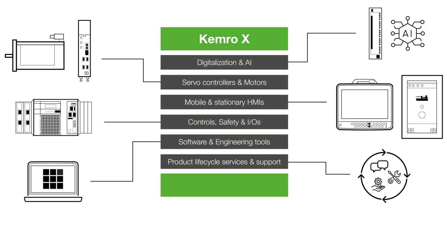 Kemro X fait partie d’une plate-forme d’automatisation ouverte et éprouvée sur le marché depuis 2019. Conçue pour offrir une grande flexibilité, Kemro X permet de développer des solutions sur mesure adaptées à tous types d’applications industrielles — machines, lignes de production, cellules robotisées ou systèmes CNC — en combinant des composants matériels et logiciels selon les besoins spécifiques de chaque utilisateur.